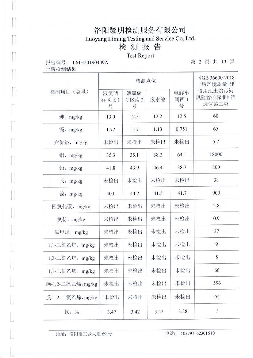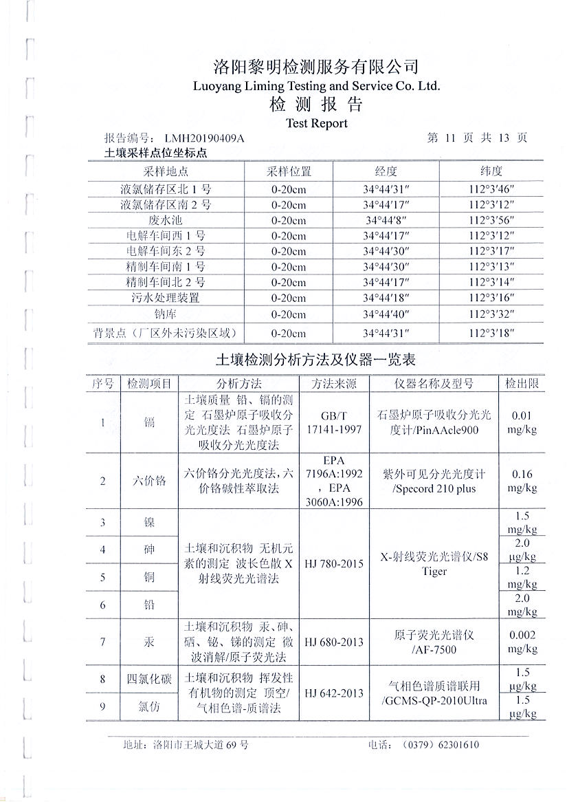 洛陽萬基金屬鈉公司土壤檢測報告公示