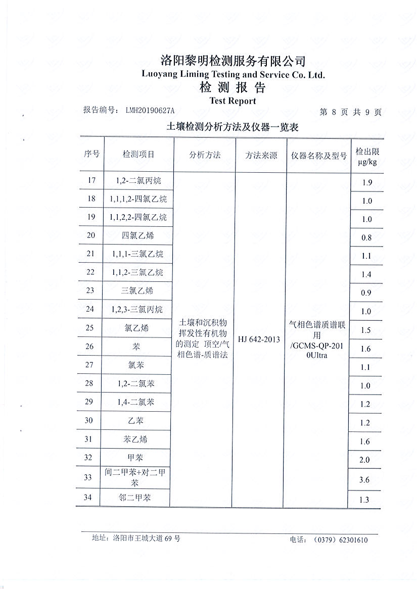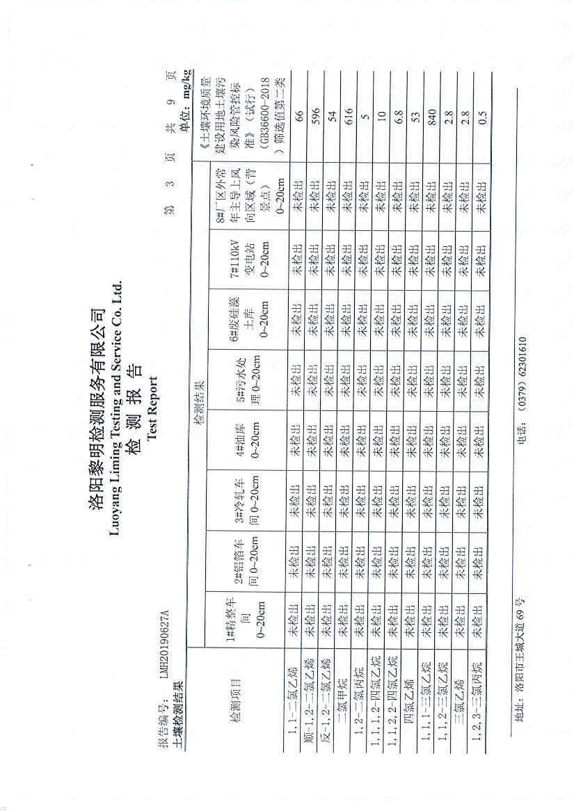洛陽萬基鋁加工有限公司2019年土壤檢測(cè)報(bào)告